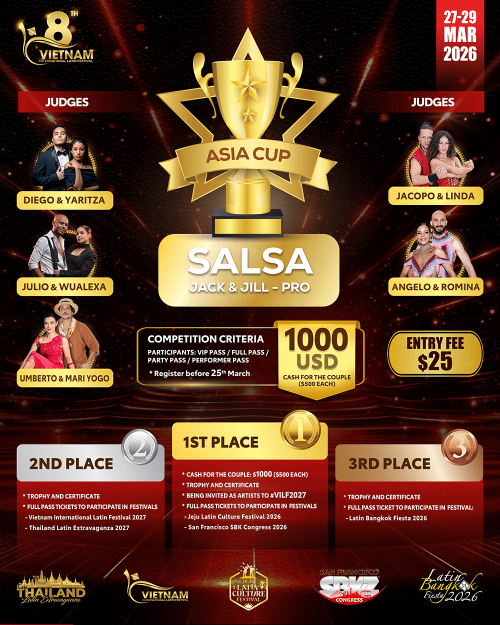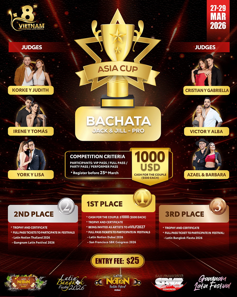 JACK & JILL COMPETITION ( Registration deadline: March 25th, 2026 ) J&J Competition Choose an optionBachata J&J Competition ($25 per participant)Salsa J&J Competition ($25 per participant)Bachata J&J Competition ($25 per participant)Salsa J&J Competition ($25 per participant)Clear Salsa / Bachata J&J quantity Add to cart Buy now